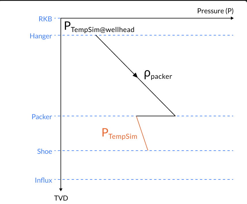 - From the packer to the casing shoe, the pressure is obtained from TempSim.