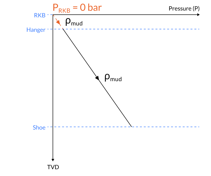 This load case is calculated using the hydrostatic pressure from mud for drilling a new section from RKB to the casing shoe.