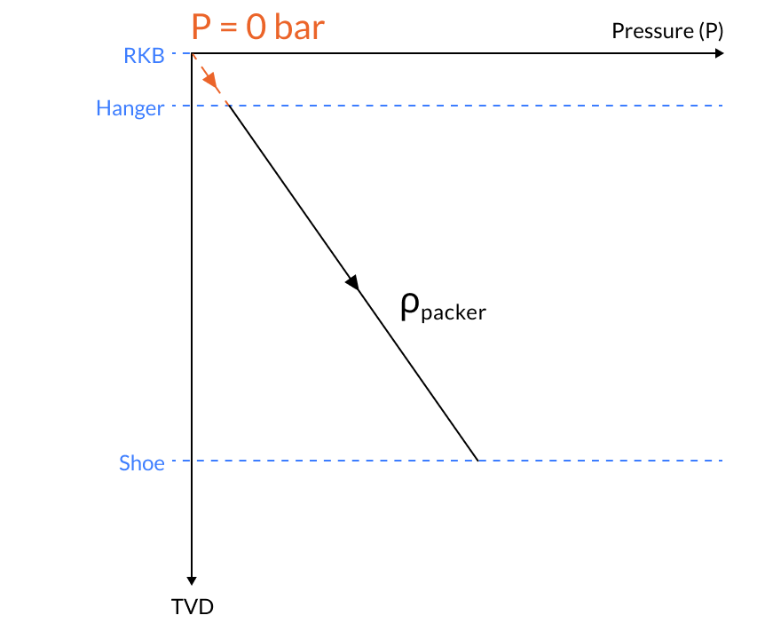 It is assumed that the external pressure at the wellhead/hanger is equal to the reservoir pressure, . By this assumption and the mud weight, it follows that the pressure at the prior shoe, , is